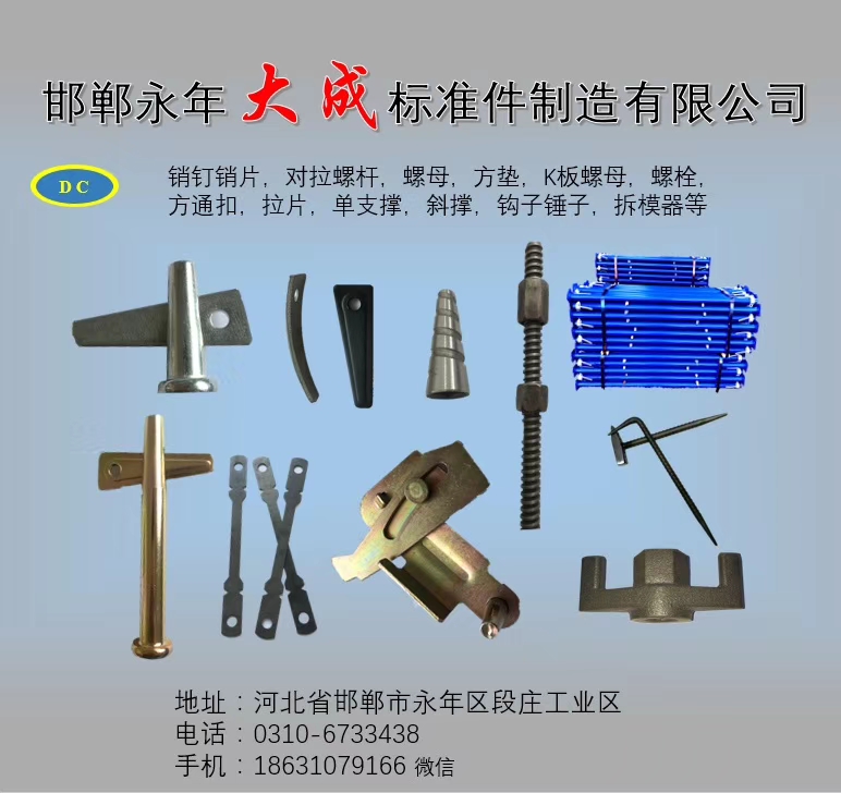 點(diǎn)擊數(shù):48352019-07-08 15:54:18 來源: 鋁模板銷釘_鋁模板配件_建筑扣件螺栓_扣件螺絲生產(chǎn)廠家-永年區(qū)大成標(biāo)準(zhǔn)件制造有限公司